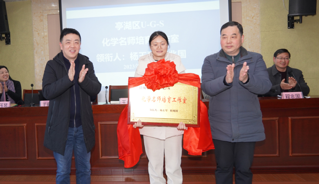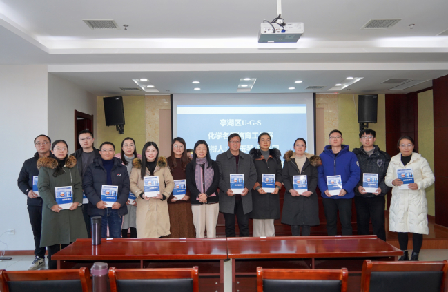为有效发挥名师的引领示范作用,放大优质资源,提高亭湖区初中化学教师及我校附属实验学校依标教学的意识和能力。12月22日,以我校附属实验学校管理办公室组织开展“三个一”活动为契机,我校welcome光临必发集团与亭湖区教师发展中心在附属实验学校举办了亭湖区初中化学依标教学研讨暨U-G-S名师培育工作室揭牌仪式。亭湖区教育局副局长葛忠德、新洋第二实验学校(7790必发集团附属学校)校长祝成荣、亭湖区教师发展中心主任程兆国、附属实验学校管理办公室主任王成兵、welcome光临必发集团院长王彦卿、U-G-S名师培育工作室主持人杨玉琴教授出席揭牌仪式,亭湖区全体初中化学教师、welcome光临必发集团化学(师范)专业教师及部分实习生参加教学研讨活动和揭牌仪式。