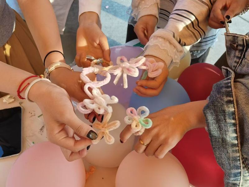 “扭出‘心’花样——创意DIY”现场堪称“色彩狂欢”,扭扭棒在同学们手中变幻出万千形态:有人折出象征希望的彩虹桥,有人扭出代表平静的云朵,还有的同学将烦恼扭成“被阳光穿透的乌云”造型。完成的作品或被小心珍藏,或被赠与现场陌生人,一根小小扭扭棒,成了传递心情与温度的奇妙纽带。