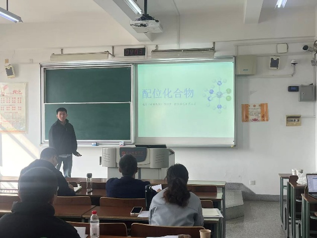 现场汇报环节,9名教师依次进行15分钟讲课展示,课程涵盖《无机化学》《分析化学》《有机化学》《《工程制图及CAD》等。参赛教师围绕教学目标、课堂互动、课程思政融入和科研成果转化教学案例进行汇报,充分展现课程教学思路与创新举措,尽显青年教师教学热情与成长潜力。评委对9位老师的教学汇报给予了肯定,同时指出不足并给出改进建议。