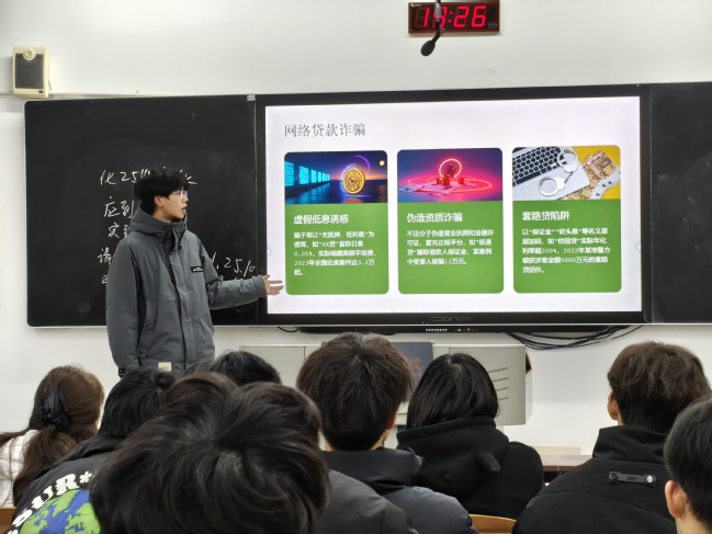 学院依托反诈志愿宣讲队,构建“线下宣讲+线上推送”全覆盖宣传格局。宣讲队员走进“一站式”学生社区,通过案例讲解、互动答疑、发放宣传手册等形式,向同学们普及刷单返利、冒充客服、校园贷、虚假兼职等高发诈骗类型,拆解诈骗套路,传授防范技巧,引导大家提高警惕、守住“钱袋子”。同时,宣讲队深入各班级教室,开展反诈主题班会,结合真实案例以案释法,提醒学生不轻信、不透露、不转账,遇到可疑情况及时核实、立即报警,让反诈教育入脑入心。