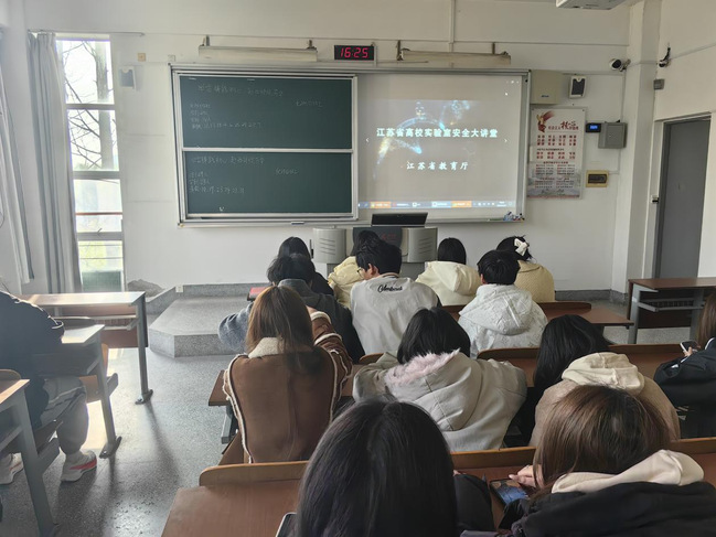 随后,各班组织学生集中收看了“江苏省高校实验室安全大讲堂”系列专题视频。视频内容涵盖实验室消防安全及事故应急响应等多个模块,专家讲解深入浅出,案例警示发人深省。观看过程中,同学们认真聆听、积极思考,对实验室安全知识有了更加系统、深刻的理解。