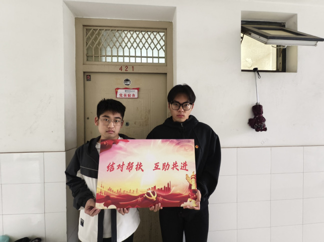 结对帮扶,携手共进助成长。学院建立党员与学业或生活困难同学的结对帮扶机制。党员与帮扶对象在社区寝室内合影并签订承诺书,明确课程辅导、习惯养成等具体举措。一张张合影既是互助见证,也是学风传递的生动写照。