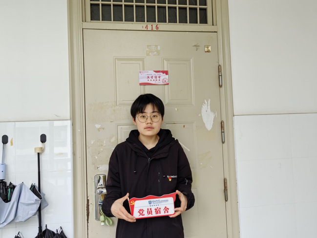 入户亮牌,党员身份亮出来。学生党员佩戴党徽,手持“党员寝室”标识牌在各自“一站式”学生社区寝室门口合影,寝室号清晰可见。这一仪式让党员公开亮明身份,接受同学监督,把党员寝室建成学风建设“先锋岗”。