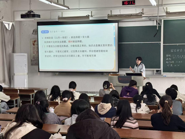 考研分享环节中,上岸学长学姐分别从目标院校选择、复习计划制定、各科复习技巧等方面展开讲解。他们强调,考研备考要注重夯实基础,合理分配各科复习时间,避免盲目跟风,要结合自身实际情况制定个性化复习方案;同时提醒同学们,备考过程中要保持良好的心态,克服焦虑情绪,坚持劳逸结合,重视真题演练和错题复盘,把握好备考的每一个关键节点。
